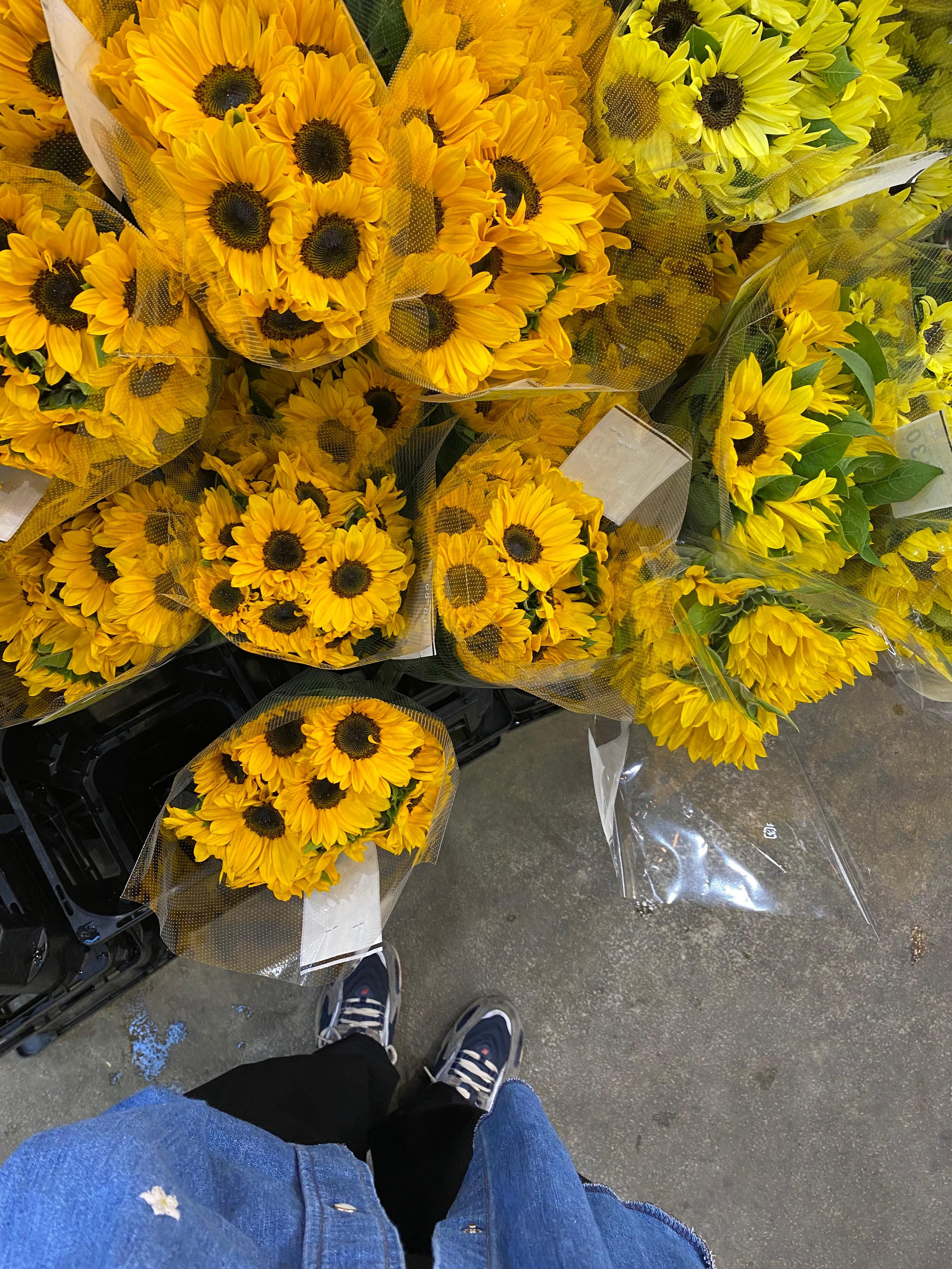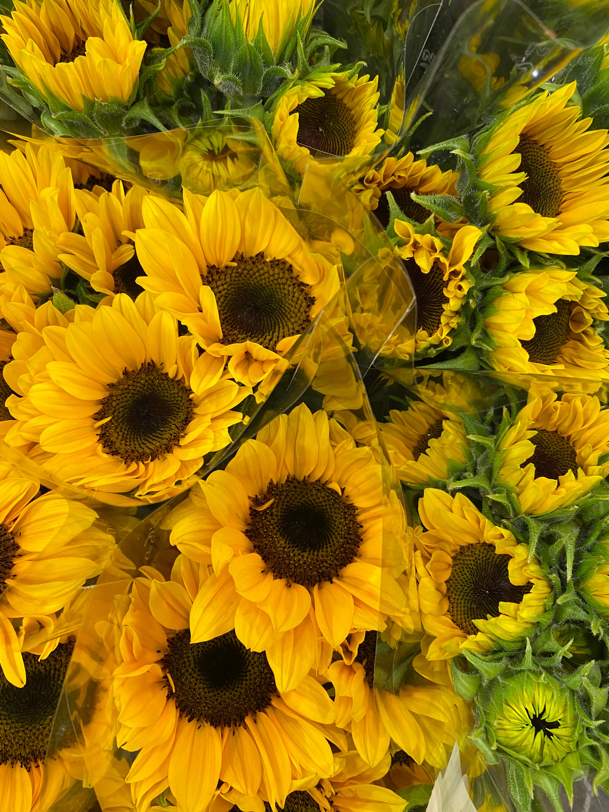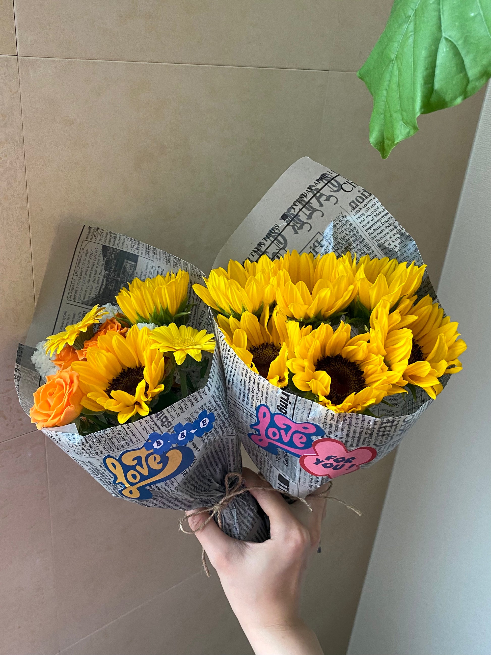 「ひまわりブーケ」は1種類1色を5~6本束ねてお届けします。色味や品種はお選びいただけません。