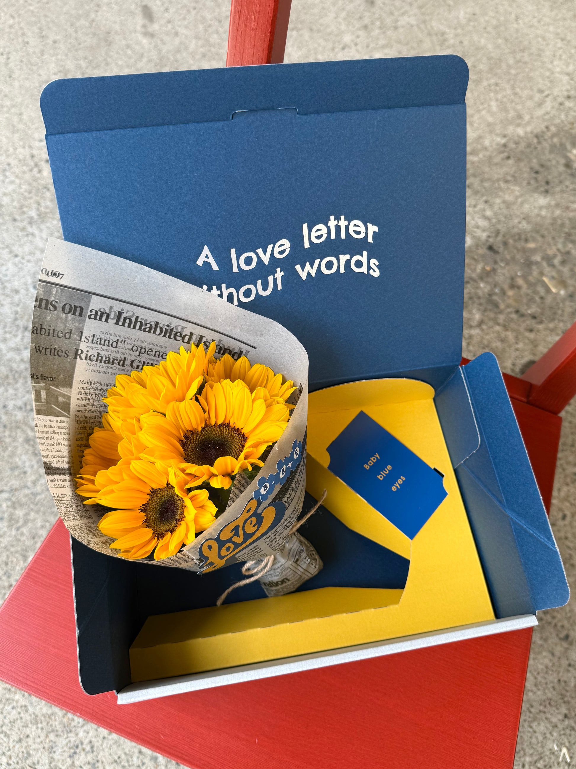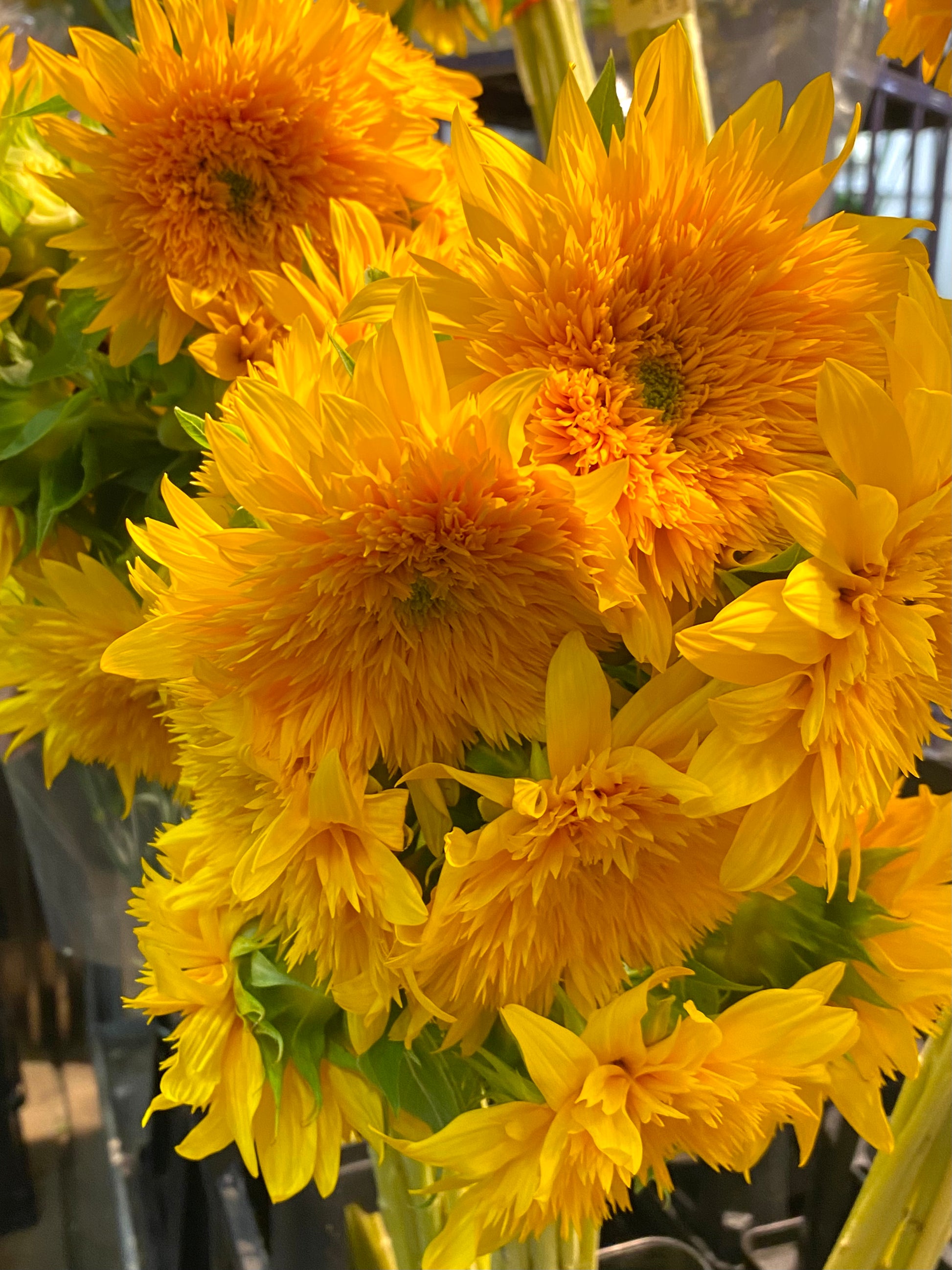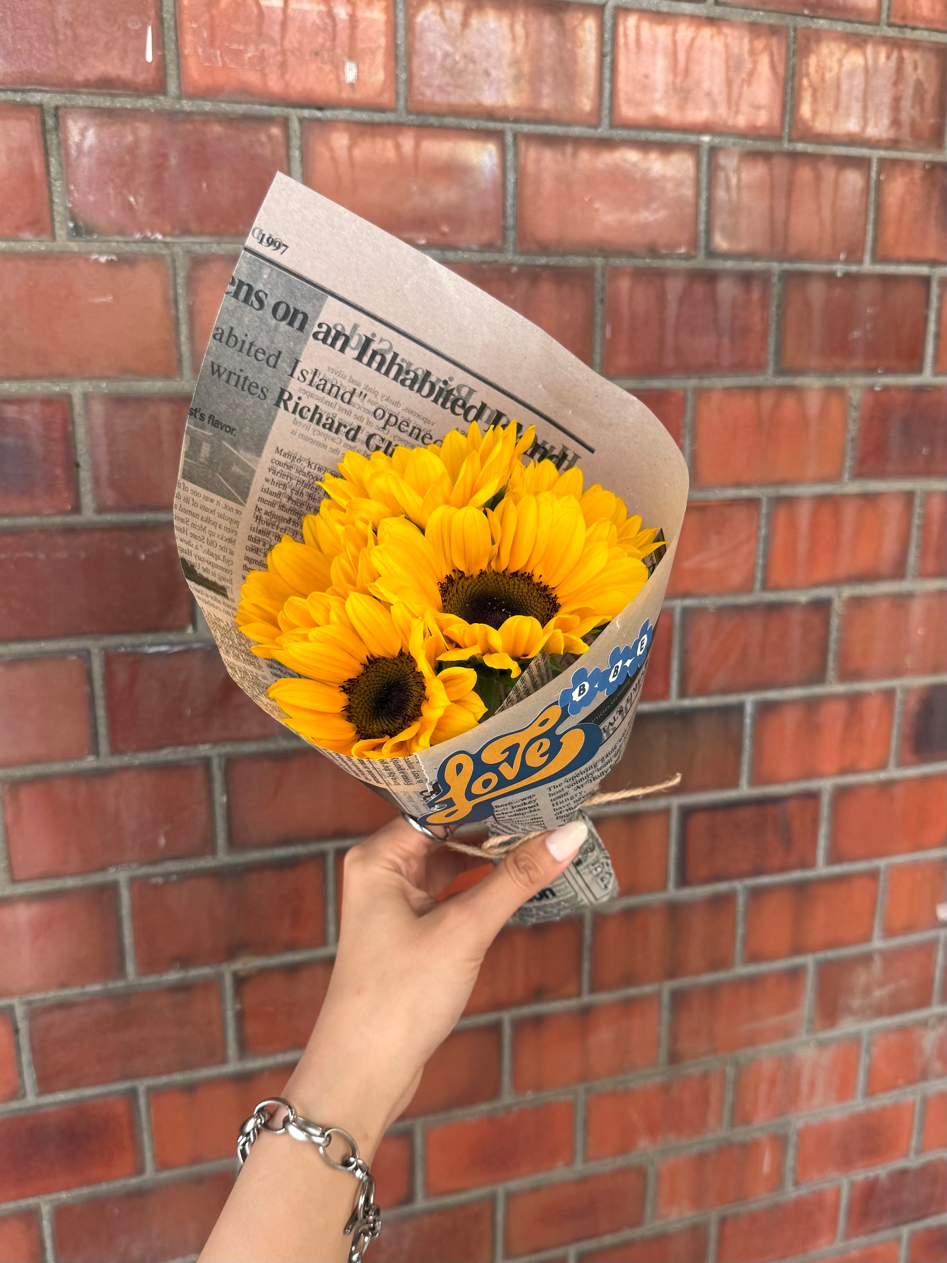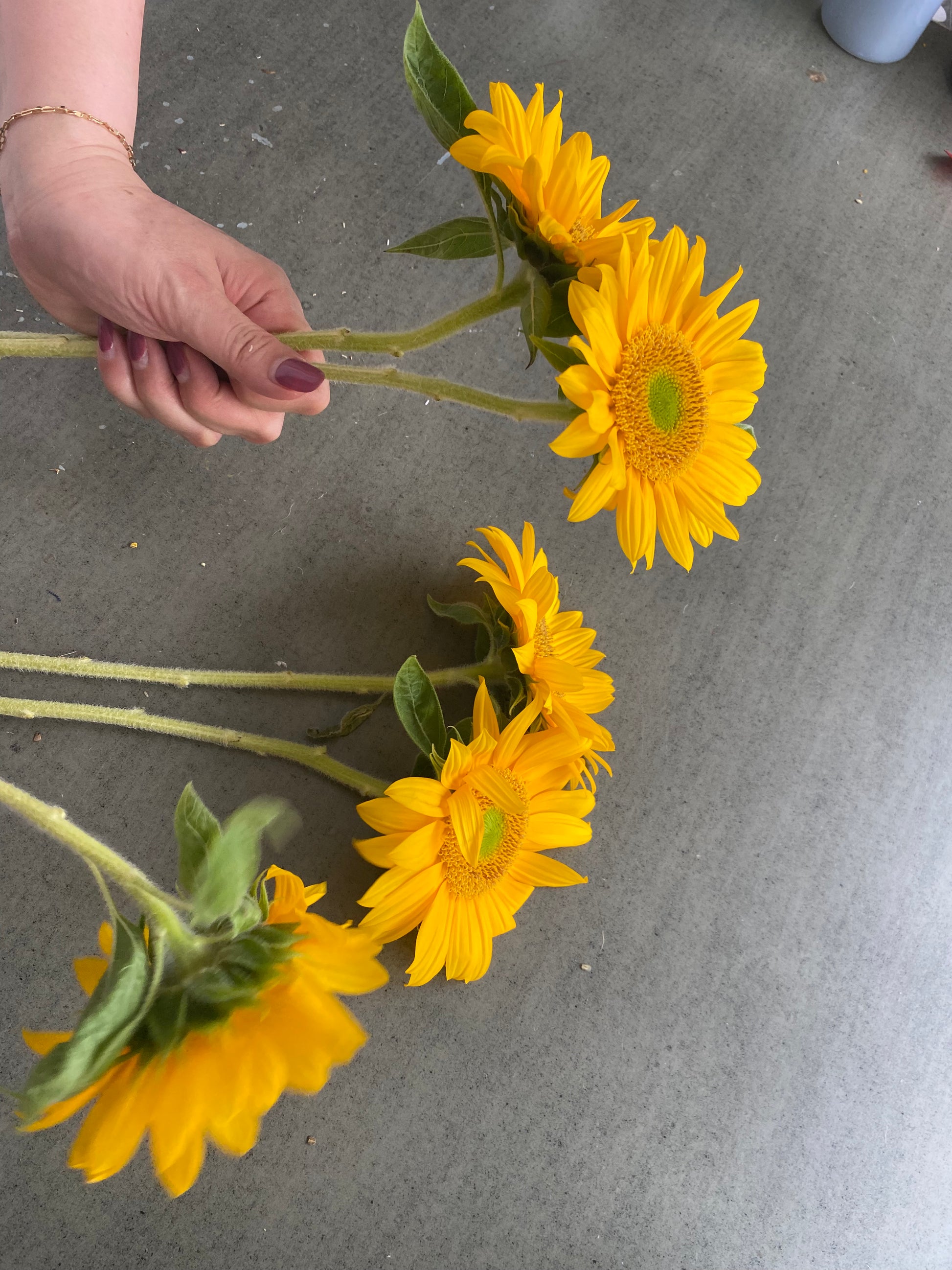 「ひまわりブーケ」は1種類1色を5~6本束ねてお届けします。色味や品種はお選びいただけません。