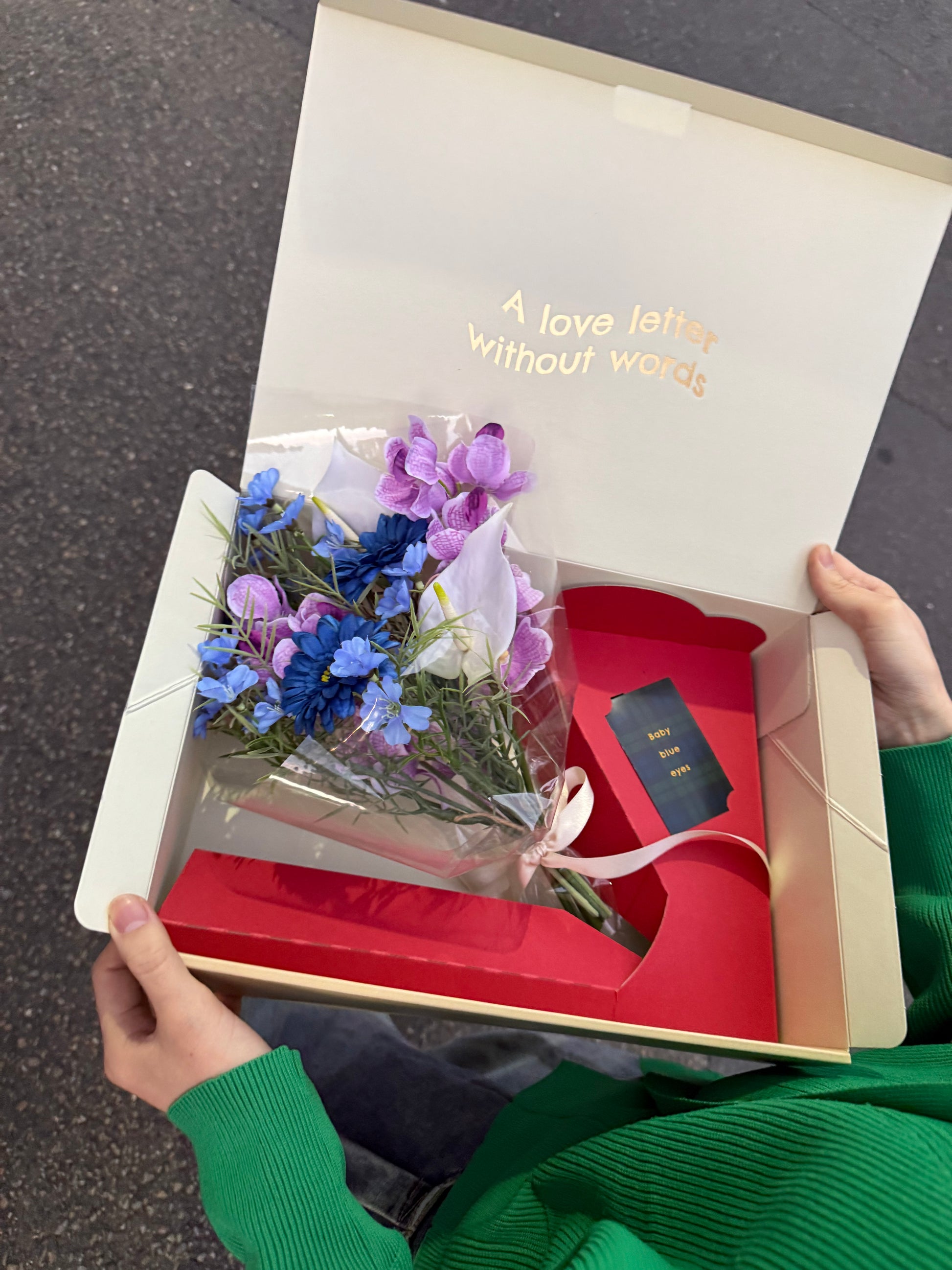 Baby blue eyesの造花花束は、すべてオーダーメイド。